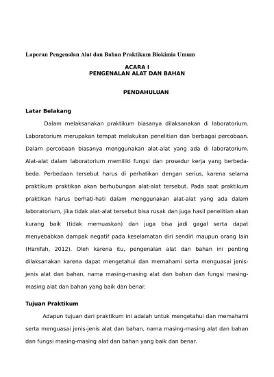 Alat laboratorium kimia merupakan benda yang digunakan dalam . View laporan praktikum biokimia pengenalan alat.docx from bio misc at. Laporan praktikum pengenalan alat laboratorium. Laporan praktikum dikumpulkan sesuai dengan waktu yang telah ditetapkan, jika. Alat merupakan salah satu pandukung dari pada .